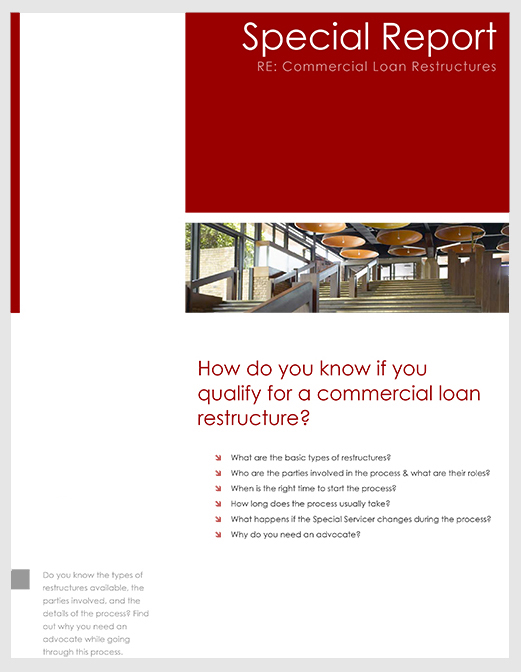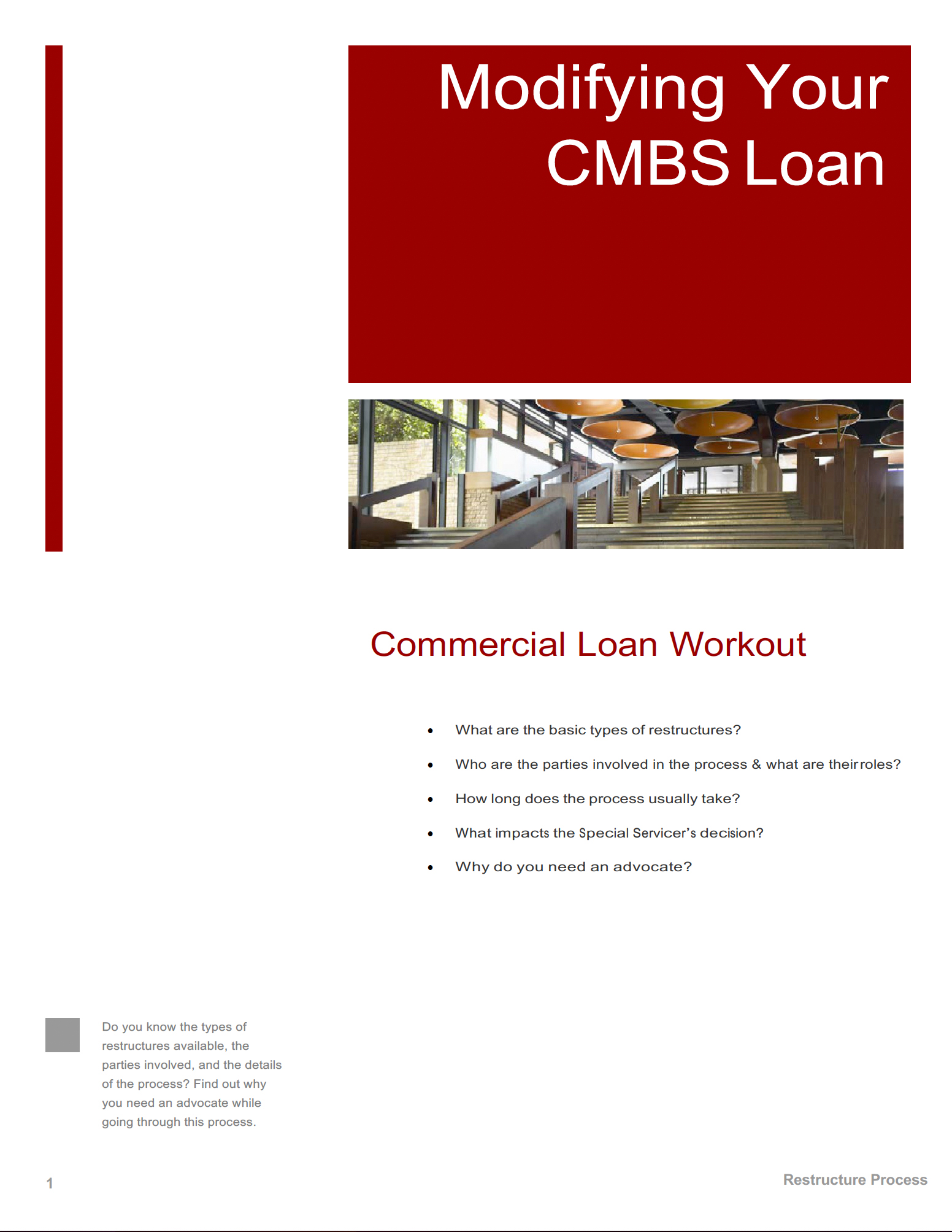 Modifying a CMBS loan is NOT like modifying a bank loan! Don’t do it alone! You need an experienced advocate on your side. No one else is on the owner’s side!